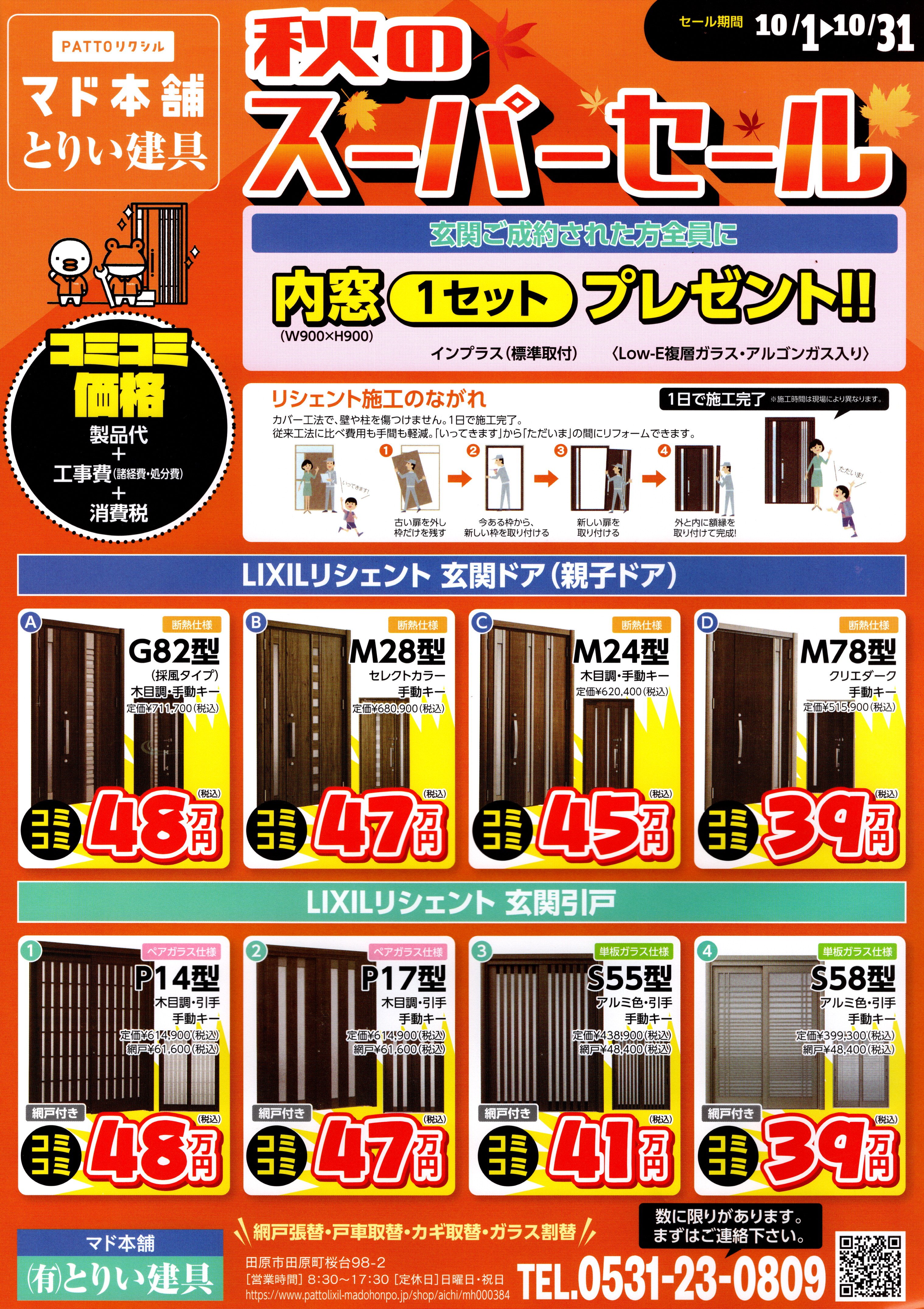 こちらのページでは、有限会社とりい建具より、マド本舗のキャンペーンや広告情報など、お得な内容を随時更新中です。